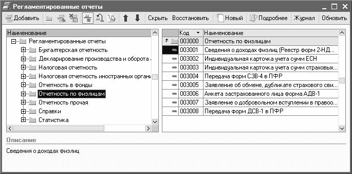 Средства для подготовки отчетности по физическим лицам (персонифицированный учет ПФР, сведения о доходах физических лиц) объединены в группу Отчетность по физлицам (см. рис. 4).