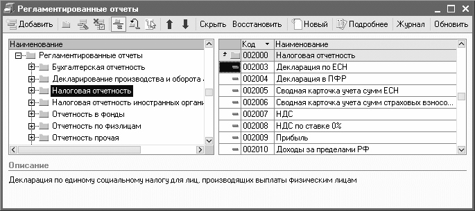 Отчетные формы по "типичным" налогам объединены в группу Налоговая отчетность (см. рис. 3).